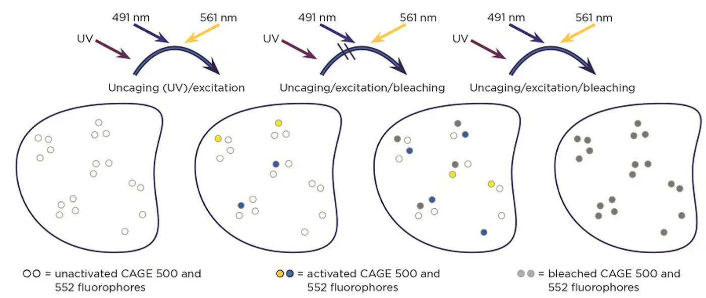 The fluorophores we employed were CAGE dyes – CAGE 500 and 552 – which are brighter than most photoactivatable proteins available. They could also be directly conjugated with primary antibodies to the small peptide-tagged LHRs at a 1:1 dye:antibody ratio, allowing for direct quantification of LHR protomers.