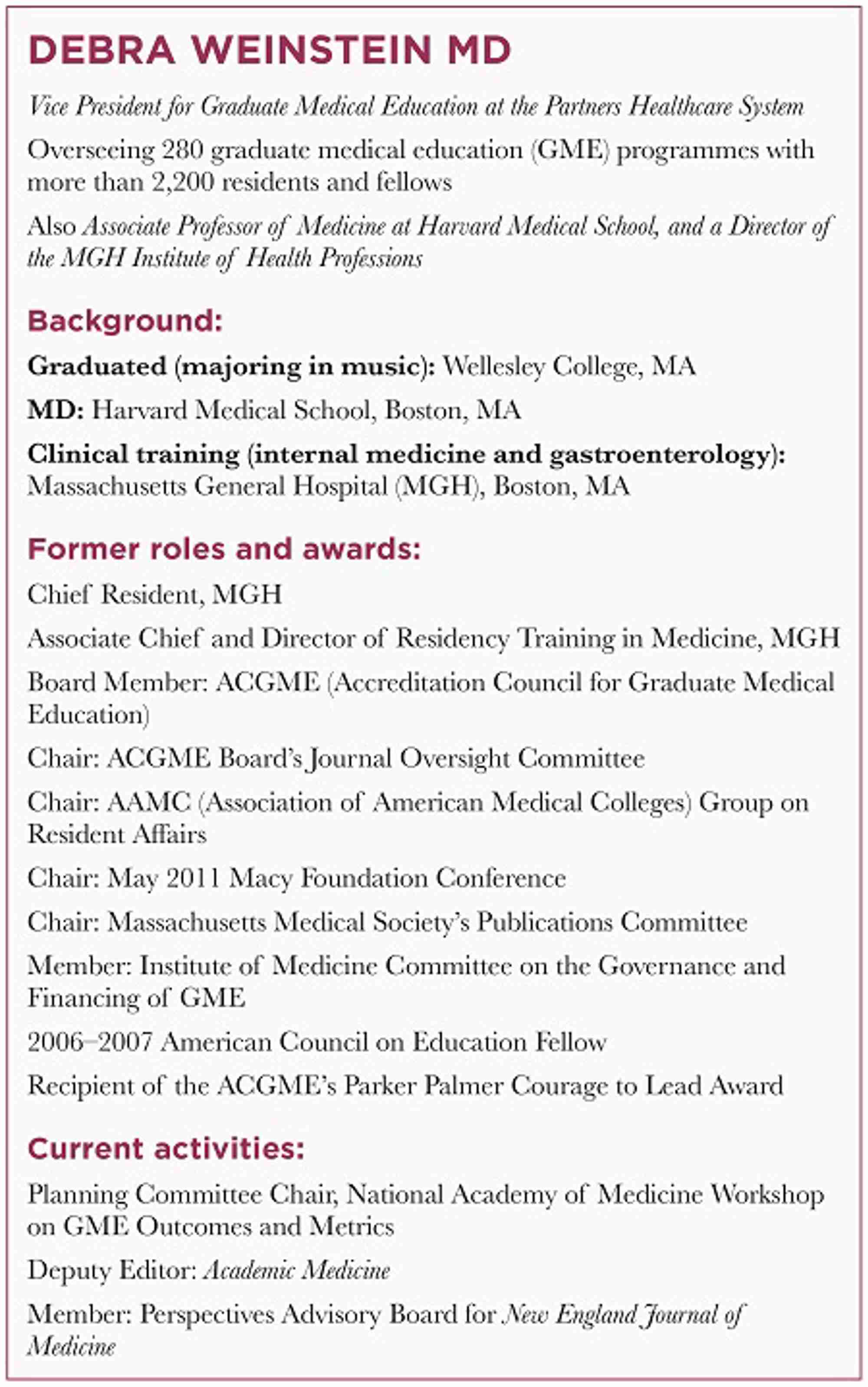 Debra Weinstein is in charge of graduate medical education across Partners Healthcare, which includes two of the most prestigious hospitals in the world: Massachusetts General and Brigham and Women’s. During a recent trip to Harvard Medical School, Amir Sam spoke with her about postgraduate education in the USA.